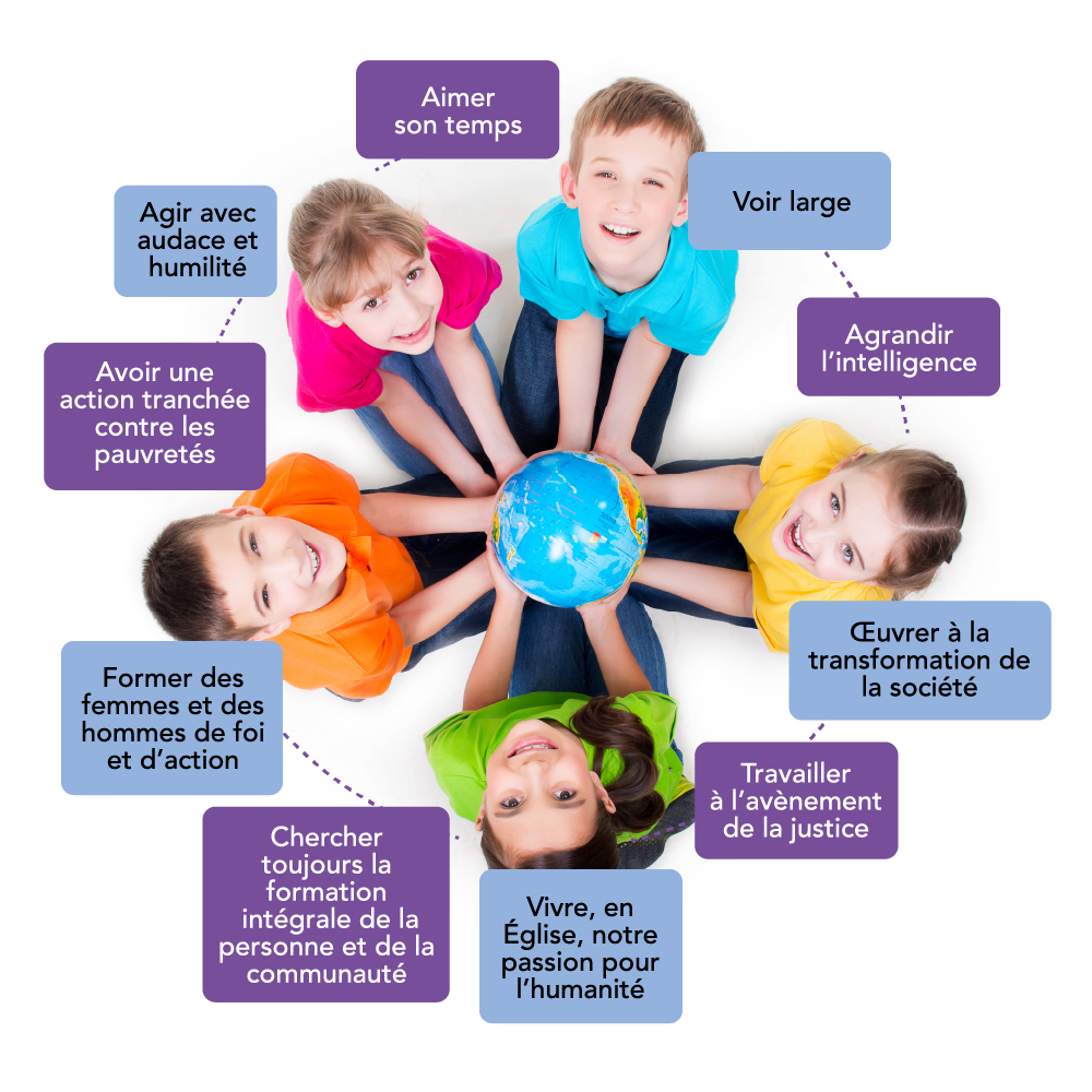 Il donne au réseau une identité particulière : celle d’une éducation qui prend en compte toute la personne et qui s’inscrit dans une vision profondément humaine et ouverte sur le monde.